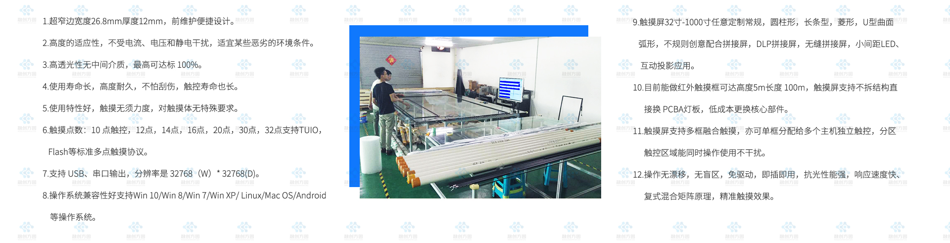 南京是江蘇省省會,是一座歷史文化名城,融創方圓2×4大尺寸紅外多點觸摸屏坐落這座城市,這套紅外觸摸屏對角線有199寸超大尺寸紅外觸控屏結合8臺拼接屏...